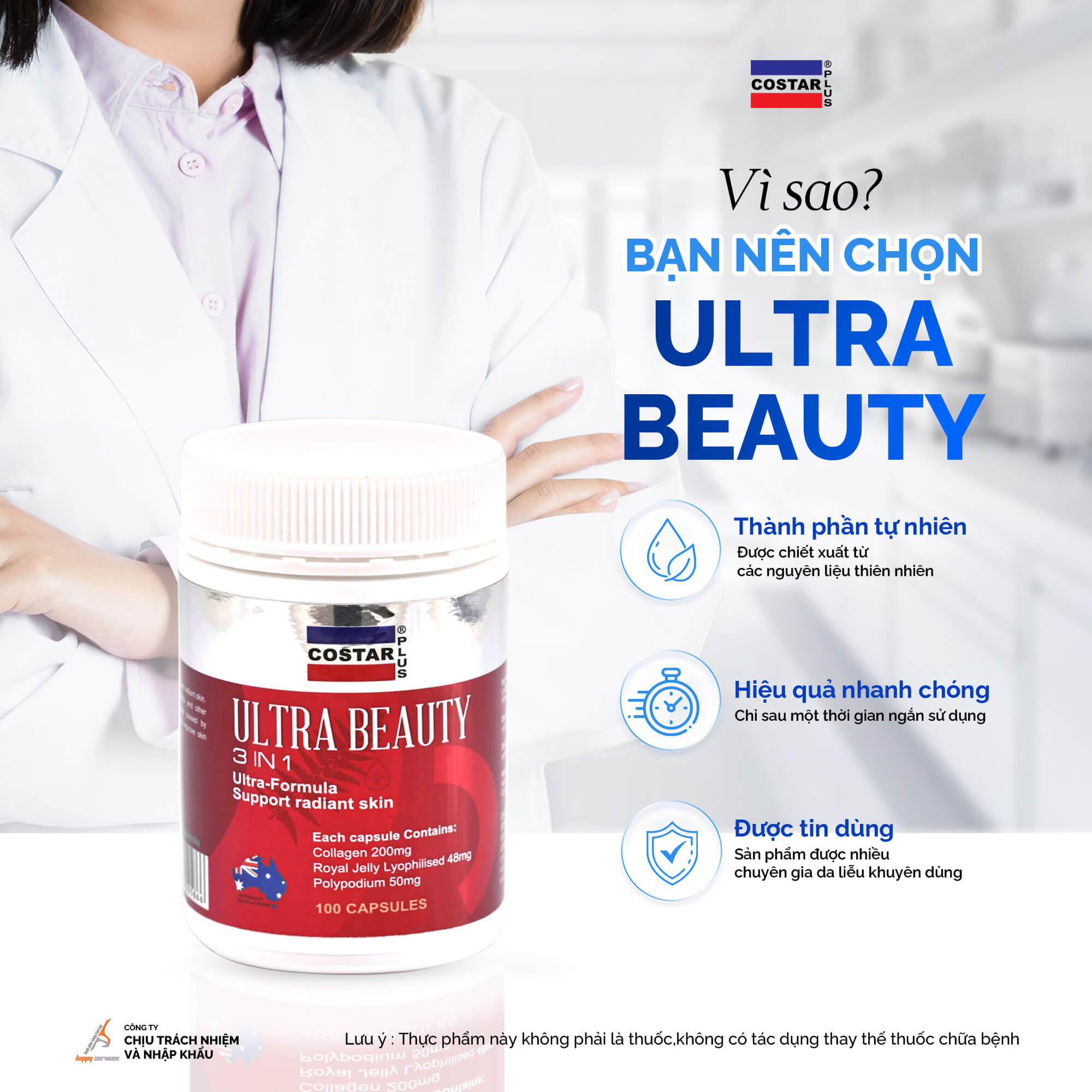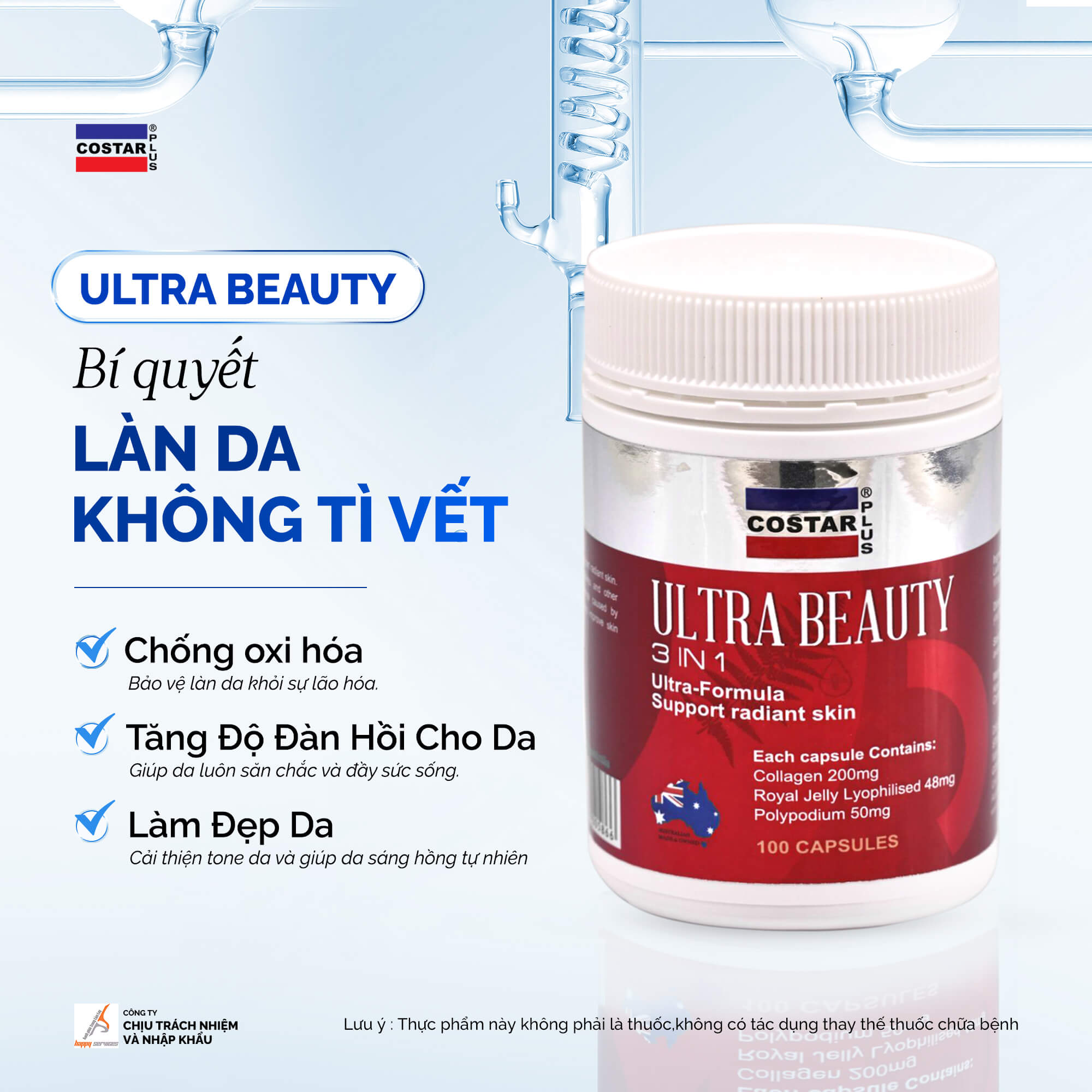 Viên Uống Làm Đẹp Da 3 in 1 Ultra Beauty Costar 100 Viên – Viên Uống Toàn Diện Cho Làn Da Tươi Trẻ.