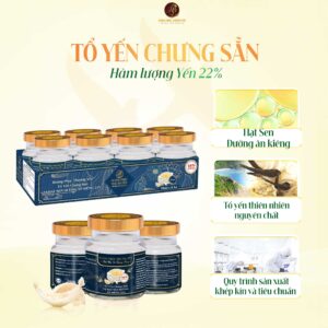 Tổ Yến Chưng Sẵn Hoàng Phúc Thượng Yến Vị Hạt Sen Đường Ăn Kiêng 22% là sản phẩm dinh dưỡng cao cấp, kết hợp giữa tổ yến tinh khiết và hạt sen giàu dưỡng chất, mang lại trải nghiệm bổ dưỡng và tiện lợi. Với 22% tổ yến nguyên chất trong từng lọ, sản phẩm không chỉ hỗ trợ tăng cường sức khỏe, cải thiện hệ miễn dịch mà còn giúp đẹp da và bồi bổ cơ thể. Đặc biệt, sản phẩm sử dụng đường ăn kiêng, phù hợp cho những người đang theo chế độ ăn uống kiêng đường, người tiểu đường hoặc mong muốn duy trì vóc dáng.